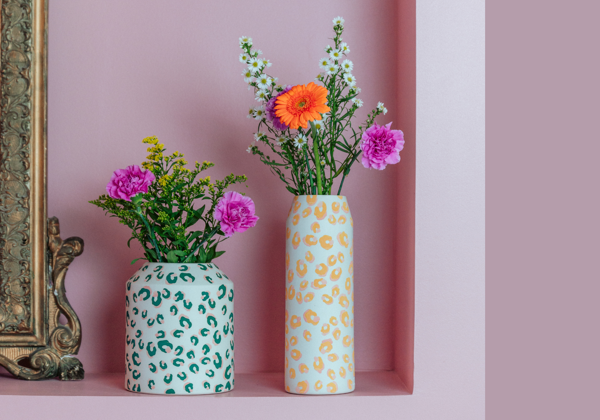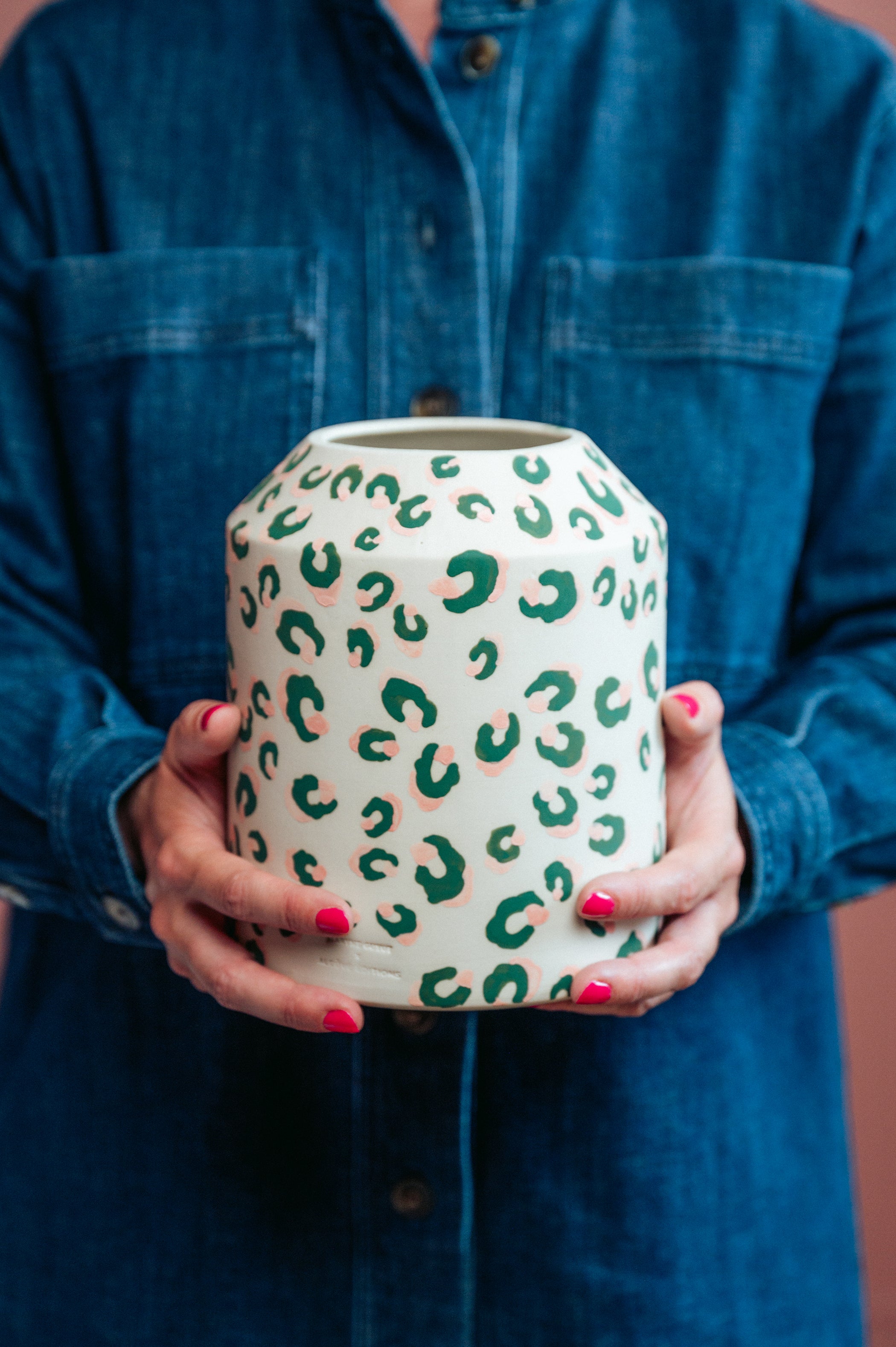 Le motif léopard iconique dessiné par Maryne s’appose avec justesse sur les vases dessinés par Élodie.