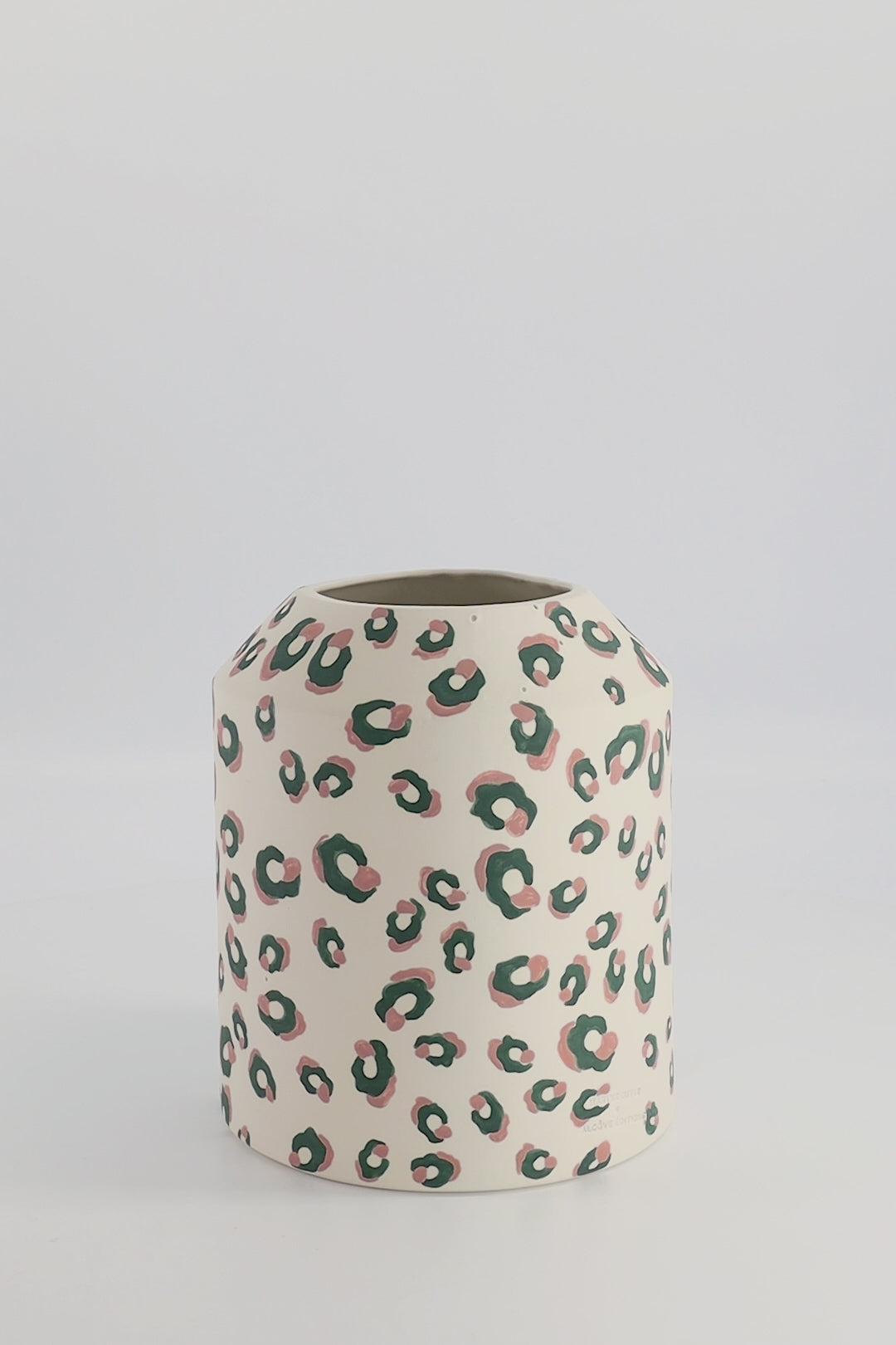 Vase bas motif léopard vert et rose - ALMA